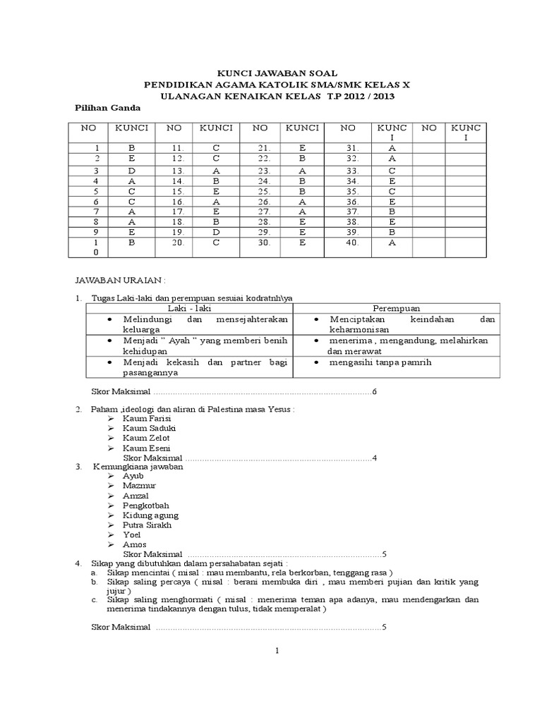 Jadi di kesempatan kali ini saya akan membagikan soal dan jawaban uts agama katolik sma kelas 12 semester 2 2021 tahun pelajaran 2020/2021.yang mana para bapak/ibu guru pak bisa menggunakannya sebagai bahan pembuatan naskah asli uts mendatang. Kunci jawaban soal agama kelas 12 bab 1. Dengan kurikulum 2013 sebagai acuannya. Demikian contoh soal penilaian tengah semester genap pelajaran agama katolik untuk kelas sebelas. Jadi di kesempatan kali ini saya akan membagikan soal dan jawaban uts agama katolik sma kelas 12 semester 2 2020 tahun.
